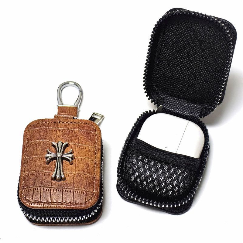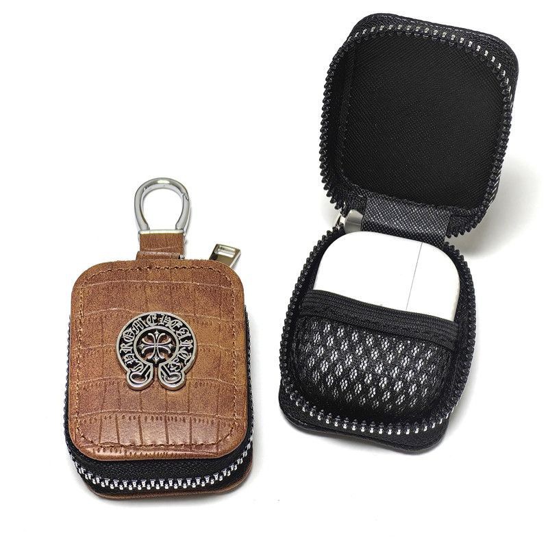 「クロムハーツのレザーバッジアクセサリー AirPods ケース✨ 素材はライチスキンレザー + 差別化メタルバッジ(バッジ差別化でダークストリートラグジュアリーの識別度を強化)、対応サイズは A.....