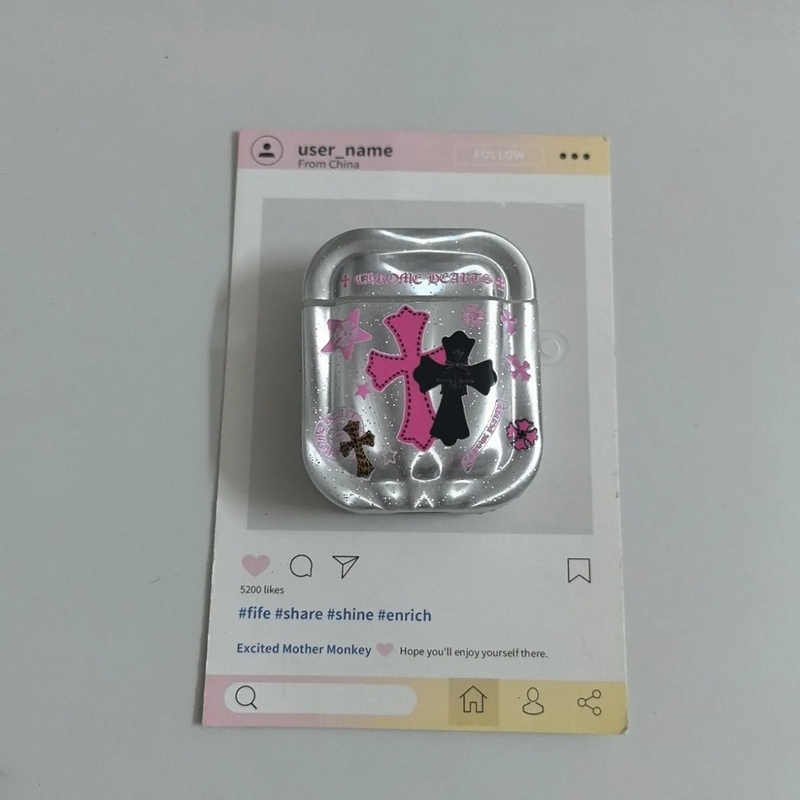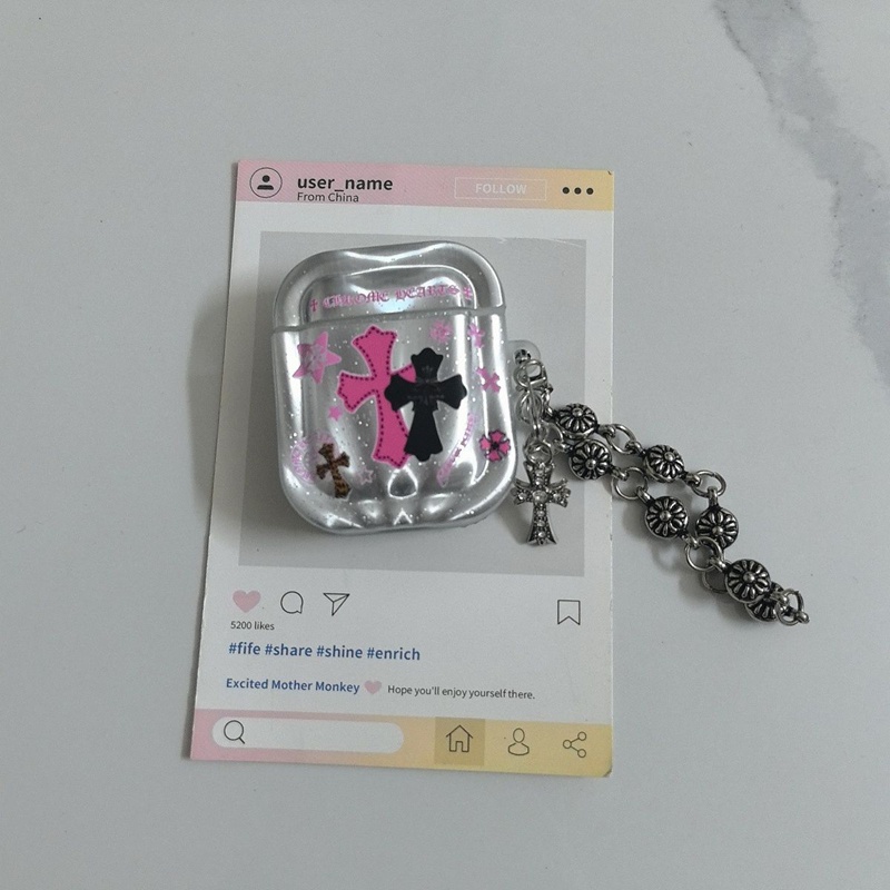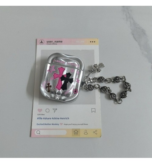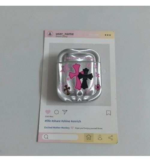 「クロムハーツのレザーバッジアクセサリー AirPods ケース✨ 素材はライチスキンレザー + 差別化メタルバッジ(バッジ差別化でダークストリートラグジュアリーの識別度を強化)、対応サイズは A.....