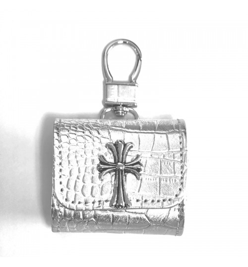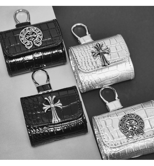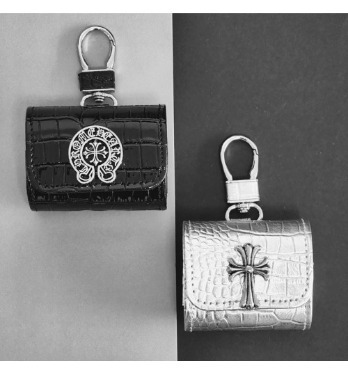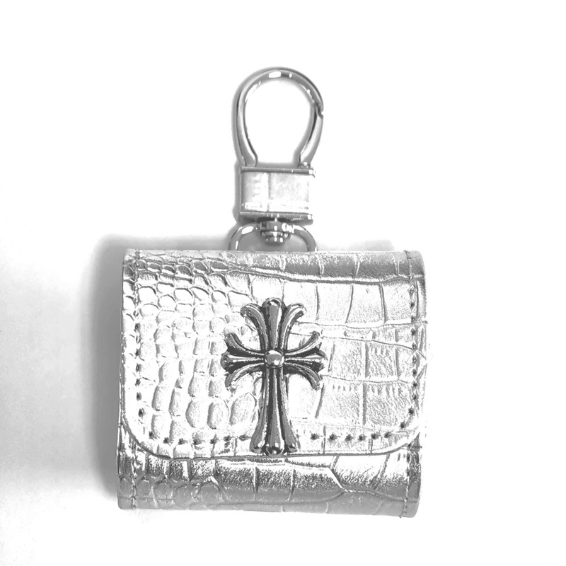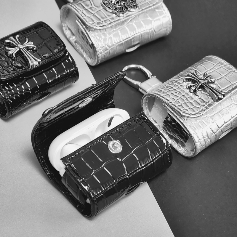 「クロムハーツのレザーバッジアクセサリー AirPods ケース✨ 素材はライチスキンレザー + 差別化メタルバッジ(バッジ差別化でダークストリートラグジュアリーの識別度を強化)、対応サイズは A.....