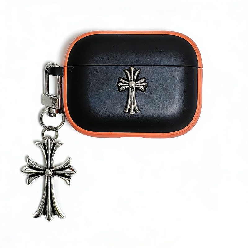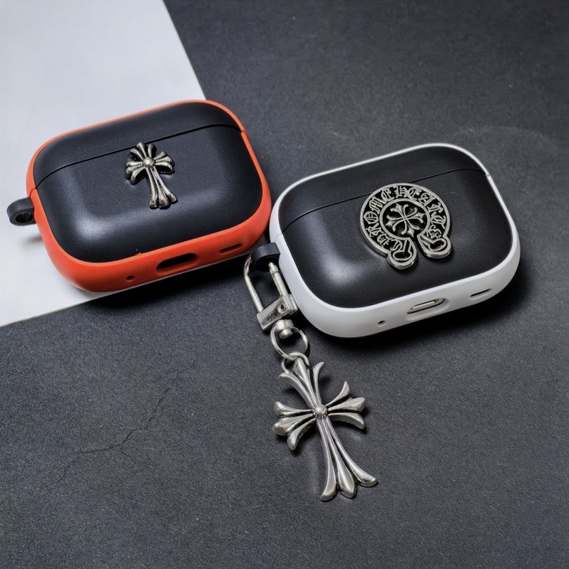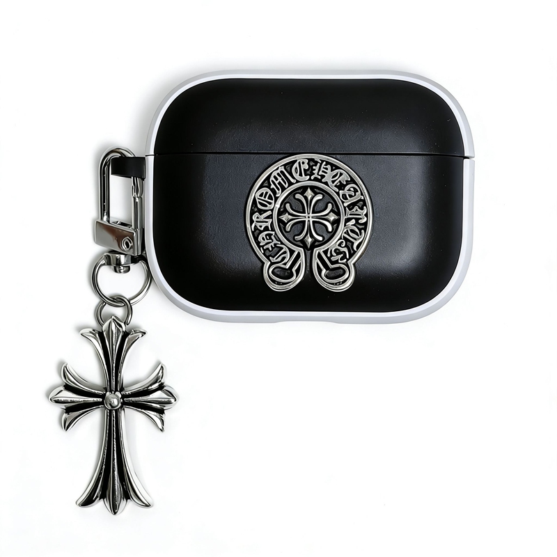 「クロムハーツのレザーバッジアクセサリー AirPods ケース✨ 素材はライチスキンレザー + 差別化メタルバッジ(バッジ差別化でダークストリートラグジュアリーの識別度を強化)、対応サイズは A.....