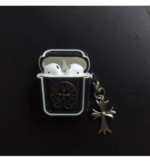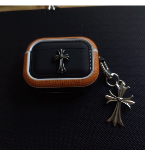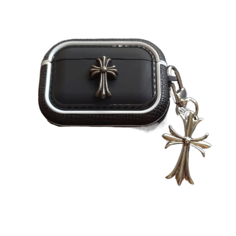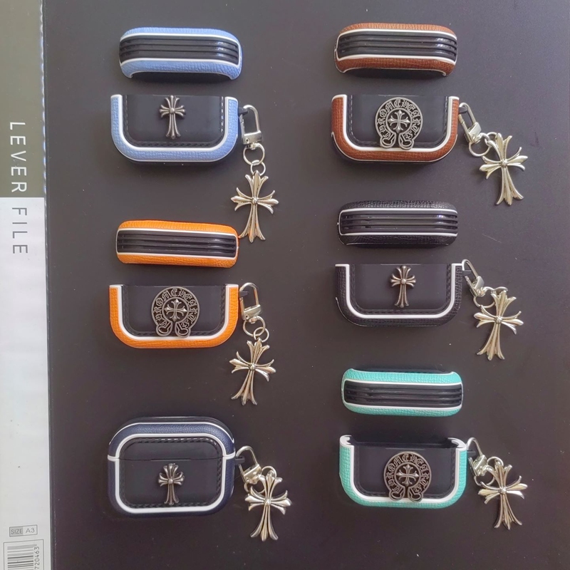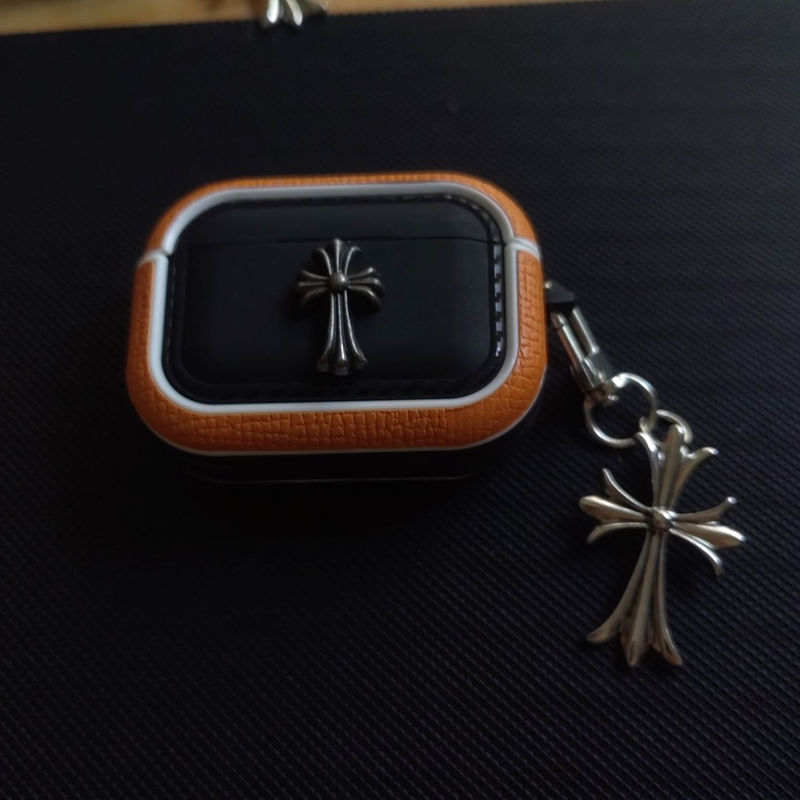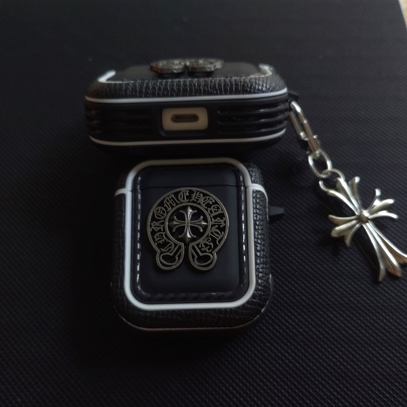 「クロムハーツのレザーバッジアクセサリー AirPods ケース✨ 素材はライチスキンレザー + 差別化メタルバッジ(バッジ差別化でダークストリートラグジュアリーの識別度を強化)、対応サイズは A.....
